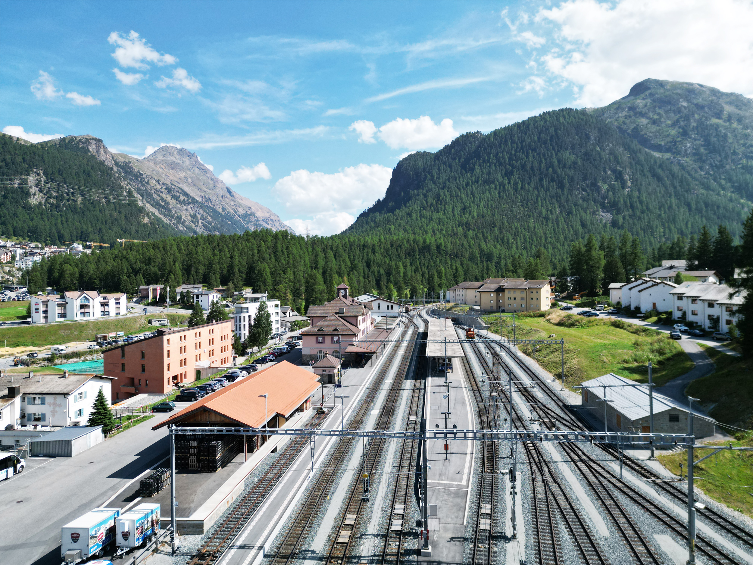 Der Bahnhof Pontresina bildet das zentrale Tor zur Berninawelt und zur Berninabahnlinie. Mit der umfassenden Instandstellung und dem gezielten Ausbau wurde dieser bedeutende Knotenpunkt im Netz der Rhätischen Bahn nachhaltig gestärkt und für zukünftige betriebliche Anforderungen vorbereitet. Als Teil der UNESCO‐geschützten Berninalinie unterliegt das gesamte Bahnhofareal strengen denkmalpflegerischen Vorgaben. Sämtliche baulichen Eingriffe erfolgen daher in enger Abstimmung mit der Denkmalpflege und mit höchster Sensibilität gegenüber der historischen Bausubstanz.