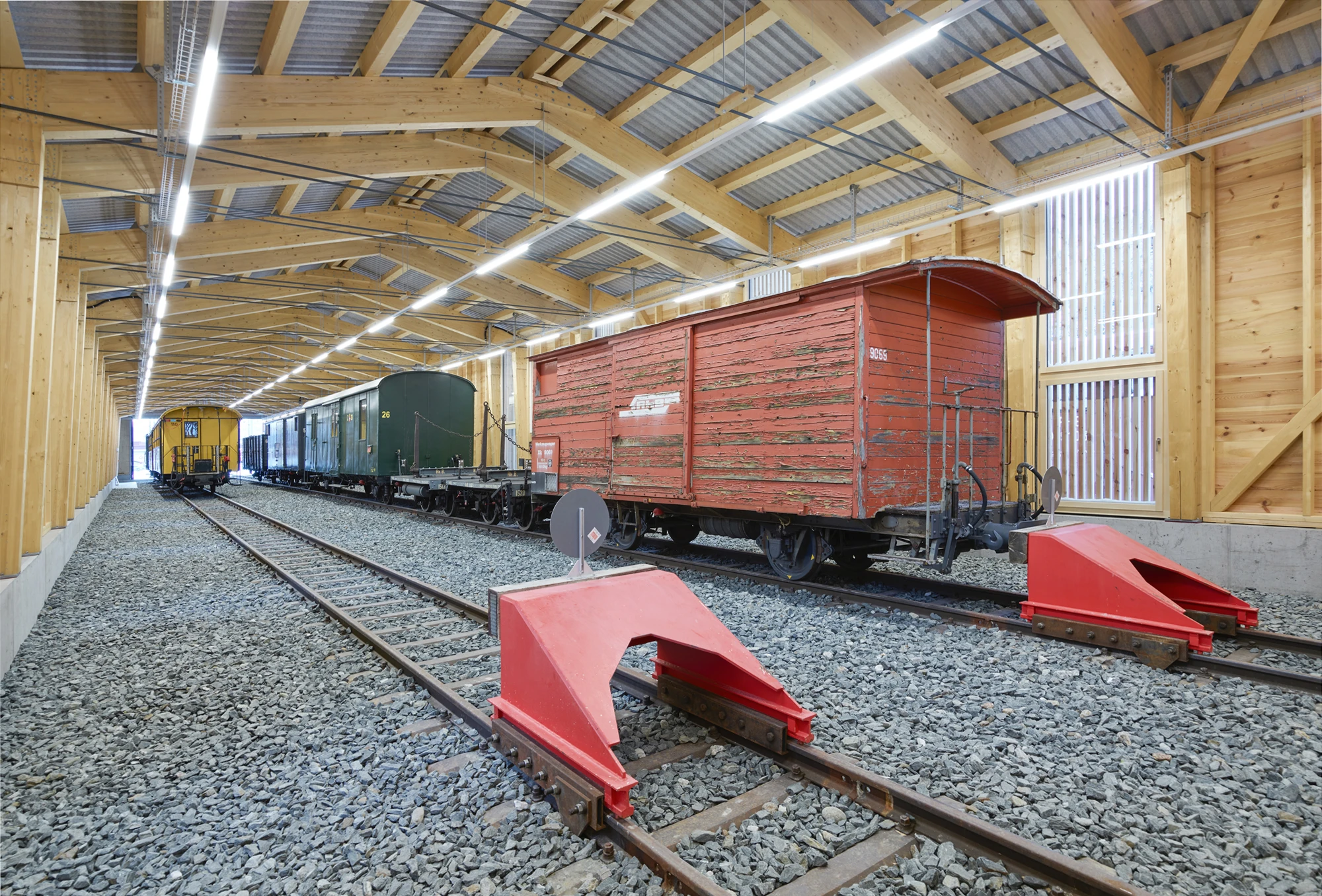 Die Einstellhalle für historische Bahnwagen der Rhätischen Bahn liegt am südöstlichen Ende des Bahnhofareals in Samedan und ist Teil der Albulalinie. Da dieses Gebiet der Rhätischen Bahn mit den dazugehörigen Bahnanlagen in die UNESCO Weltkulturerbeliste aufgenommen wurde, musste das neue Gebäude den gestellten denkmalpflegerischen Ansprüchen gerecht werden.