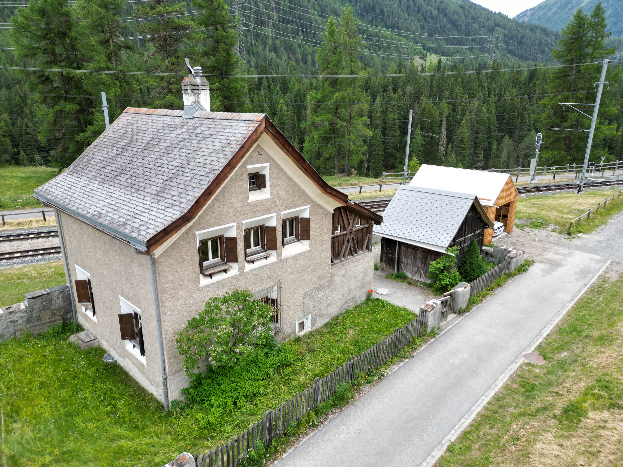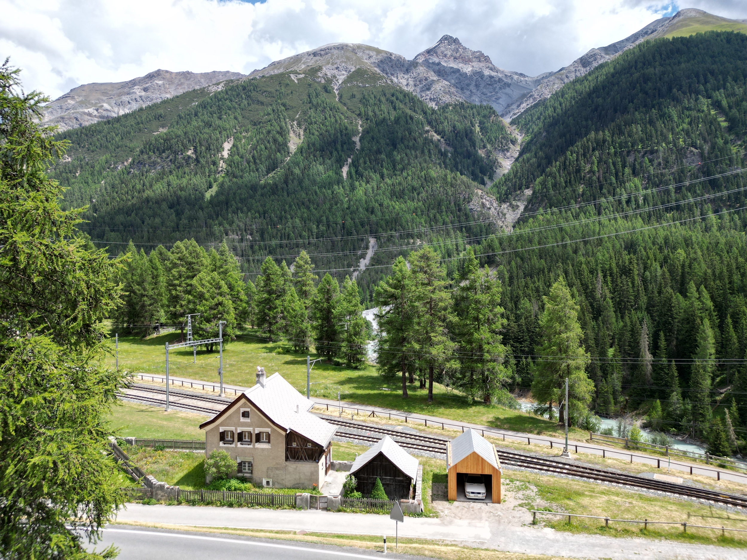 Das Bahnwärterhaus am Bahnhof der Rhätischen Bahn in Cinuos-chel ist über hundert Jahre alt und stammt aus der Gründerzeit der Bahn. Das Gebäude, zusammen mit dem angrenzenden Hühnerstall, hat die vergangenen Jahrzehnte erstaunlich gut überstanden und zeigt sich in einem bemerkenswerten Zustand. Besonders hervorzuheben ist, dass bei der Renovierung der ursprüngliche Charme und die architektonische Integrität des Hauses respektiert wurden.