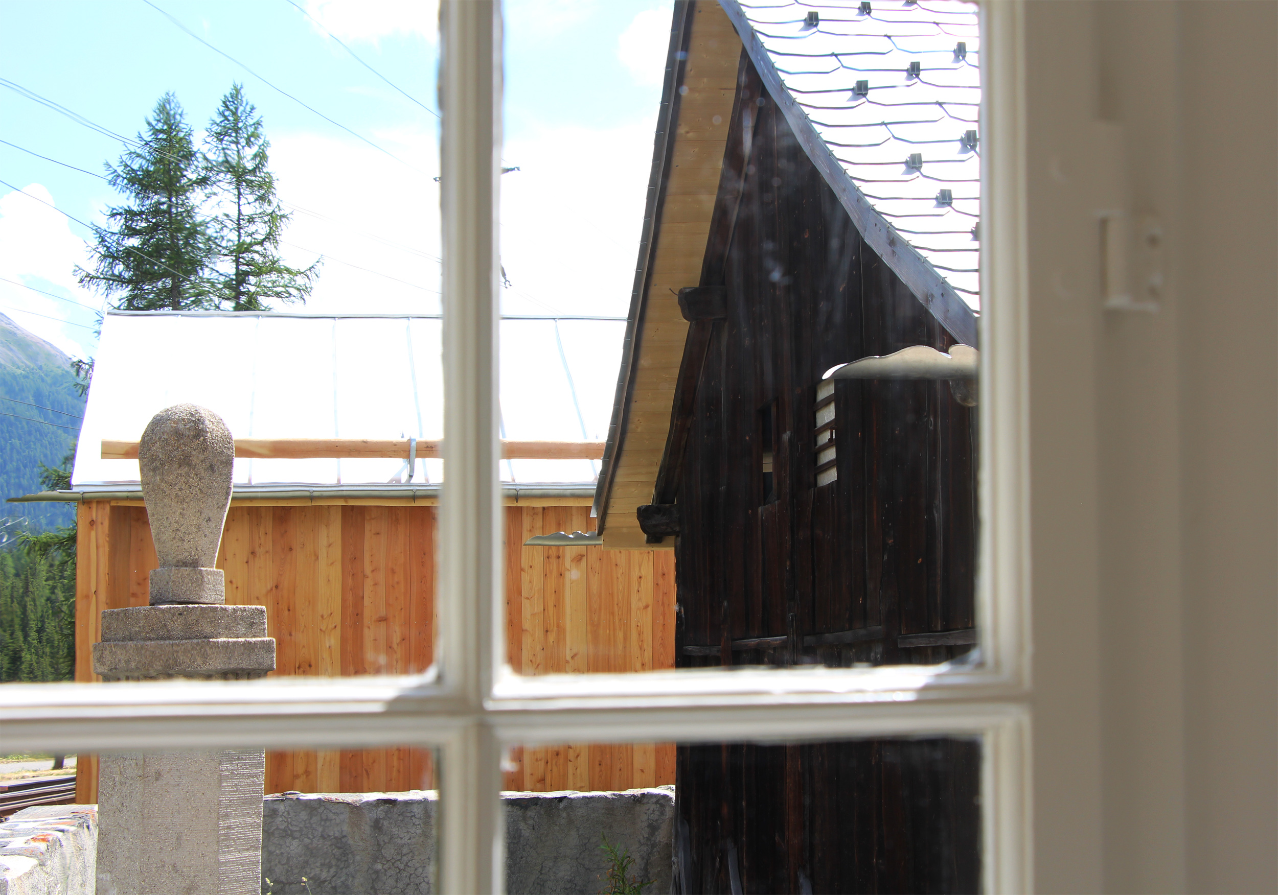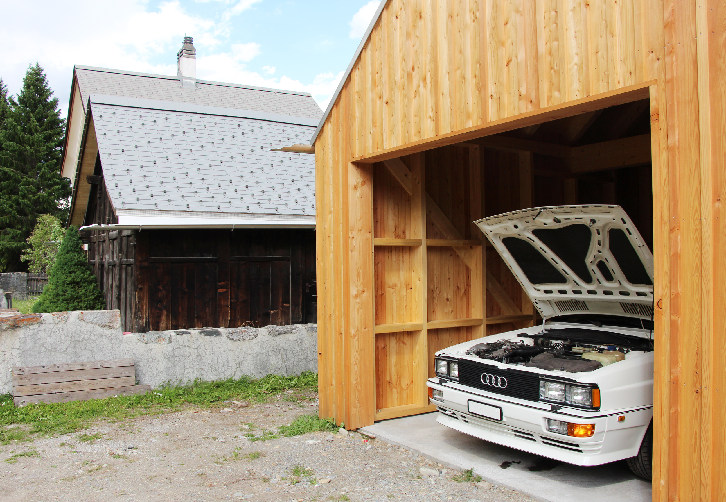 Um den modernen Bedürfnissen der Bewohner gerecht zu werden, wurde eine zusätzliche Holzkonstruktion als Autoeinstellplatz geschaffen. Diese fügt sich harmonisch in die bestehende Bauweise ein und passt sich der Typologie sowie der Architektur der bestehenden Gebäude an. Der Neubau der Autoeinstellgarage stellt zudem einen willkommenen Ersatz für eine unschöne Eternitplatten-Garage dar, die das historische Ensemble zuvor verunstaltet hatte.